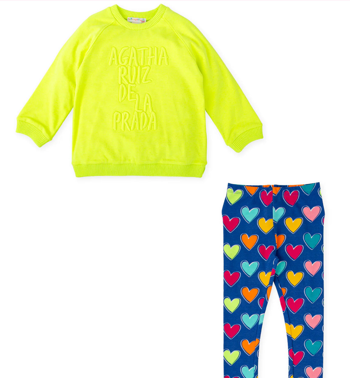 AGATHA RUIZ DE LA PRADA CONJUNTO SUDADERA LIMA Y LEGGINS CORAZONES