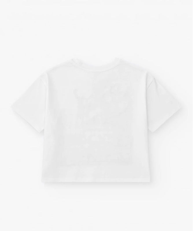 TucTuc NK Beyond The Beach Camiseta manga corta para niña en blanco y estampado floral Short para niña en denim coral y bolsillos laterales