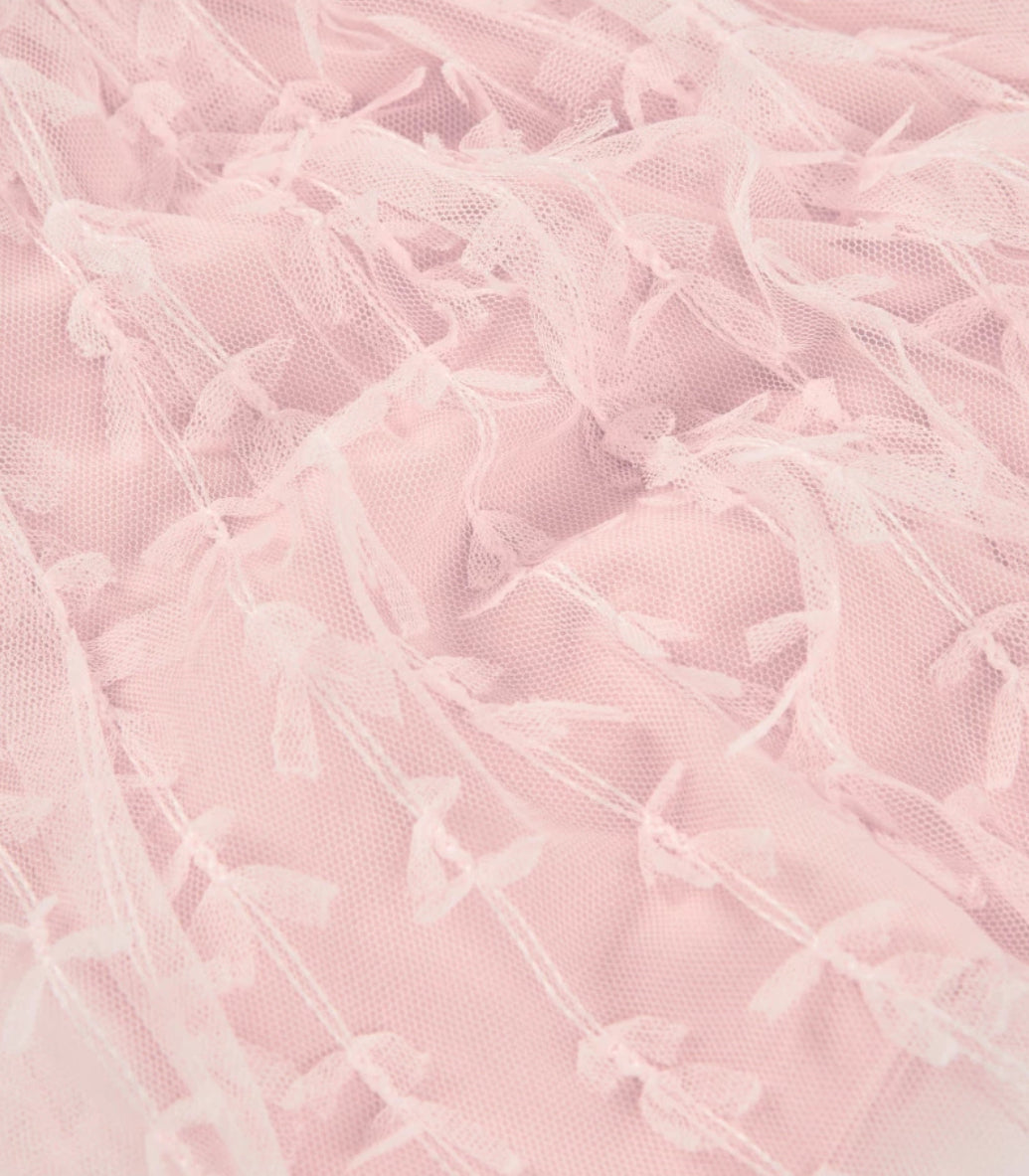 Conjunto Camiseta negra Manga Larga Detalle Lazo confeccionada en suave tejido de algodón. Falda Tul Rosa delicados Bordados en relieve