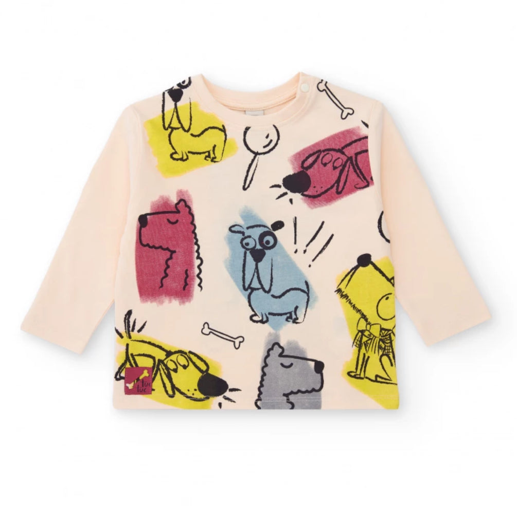 TucTuc Conjunto Niño Camiseta Manga Larga Estampado Perros Pantalón jogger azul marino con bolsillos cargo