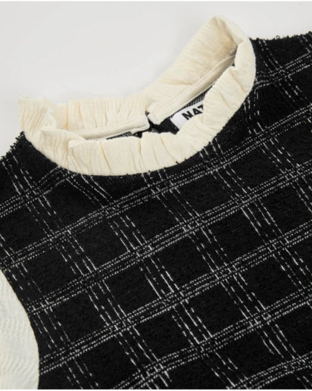 Tuc Tuc NK Vestido de niña en tejido de cuadros con mangas en contraste