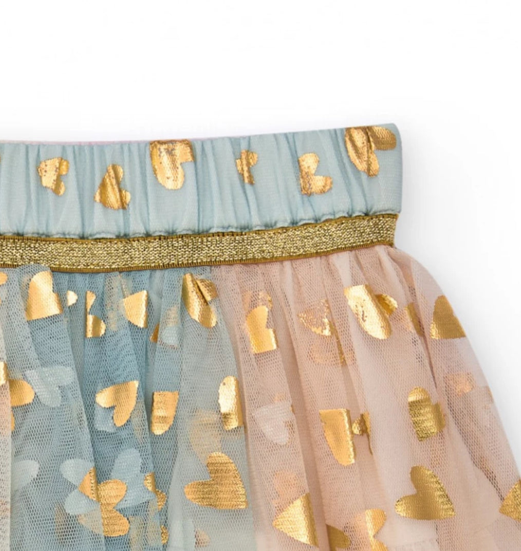 Conjunto Niña Camiseta de manga larga para niña en color blanco y Falda Tul Estampados Corazones Dorados