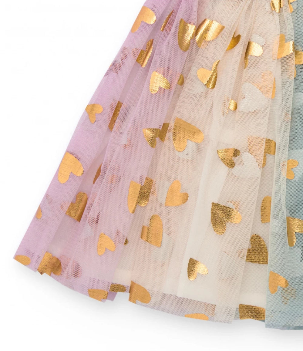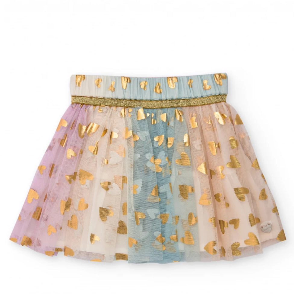 TucTuc Conjunto Camiseta Estampado Corazones Falda Tul Rosa Estampado Corazones Dorados