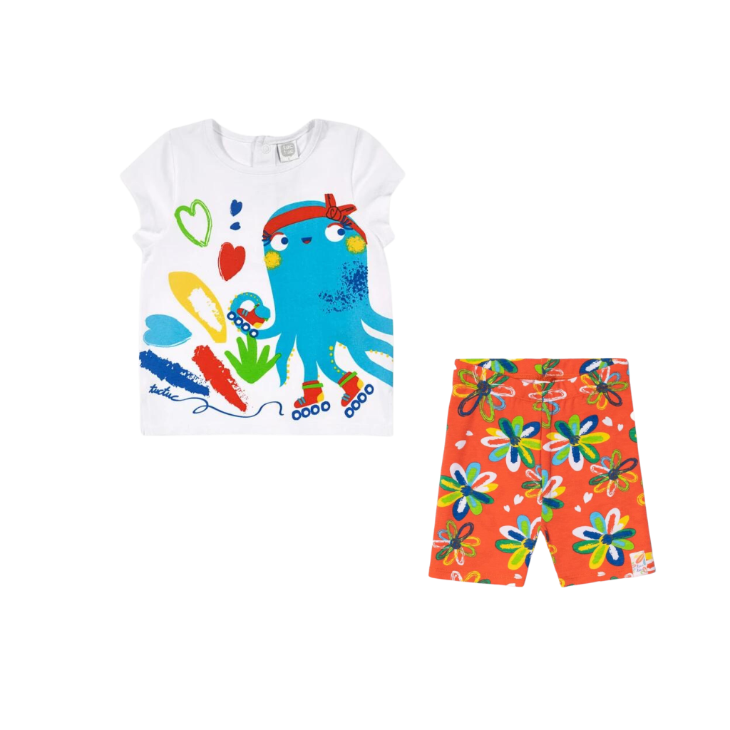 TucTuc Holiday Short Sleeves T-Shirt and Cycling Leggings Shorts for Girls