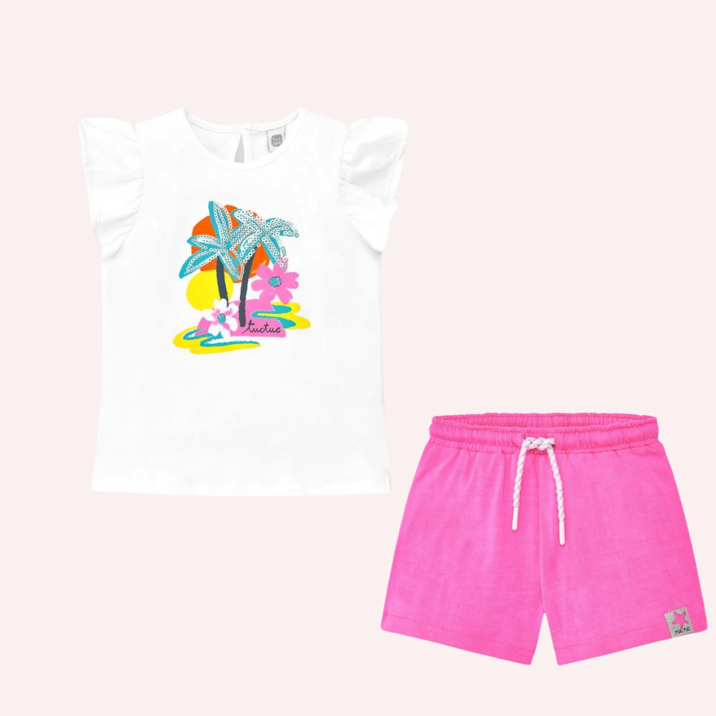 TucTuc Laguna Beach White Knit T-Shirt and Fuchsia Knit Bermuda