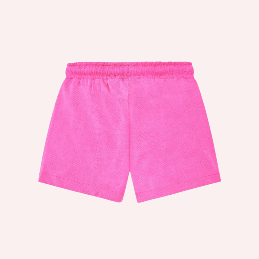 Fuchsia pink knitted shorts with elastic waistband and drawstring for girls. Collection Laguna Beach