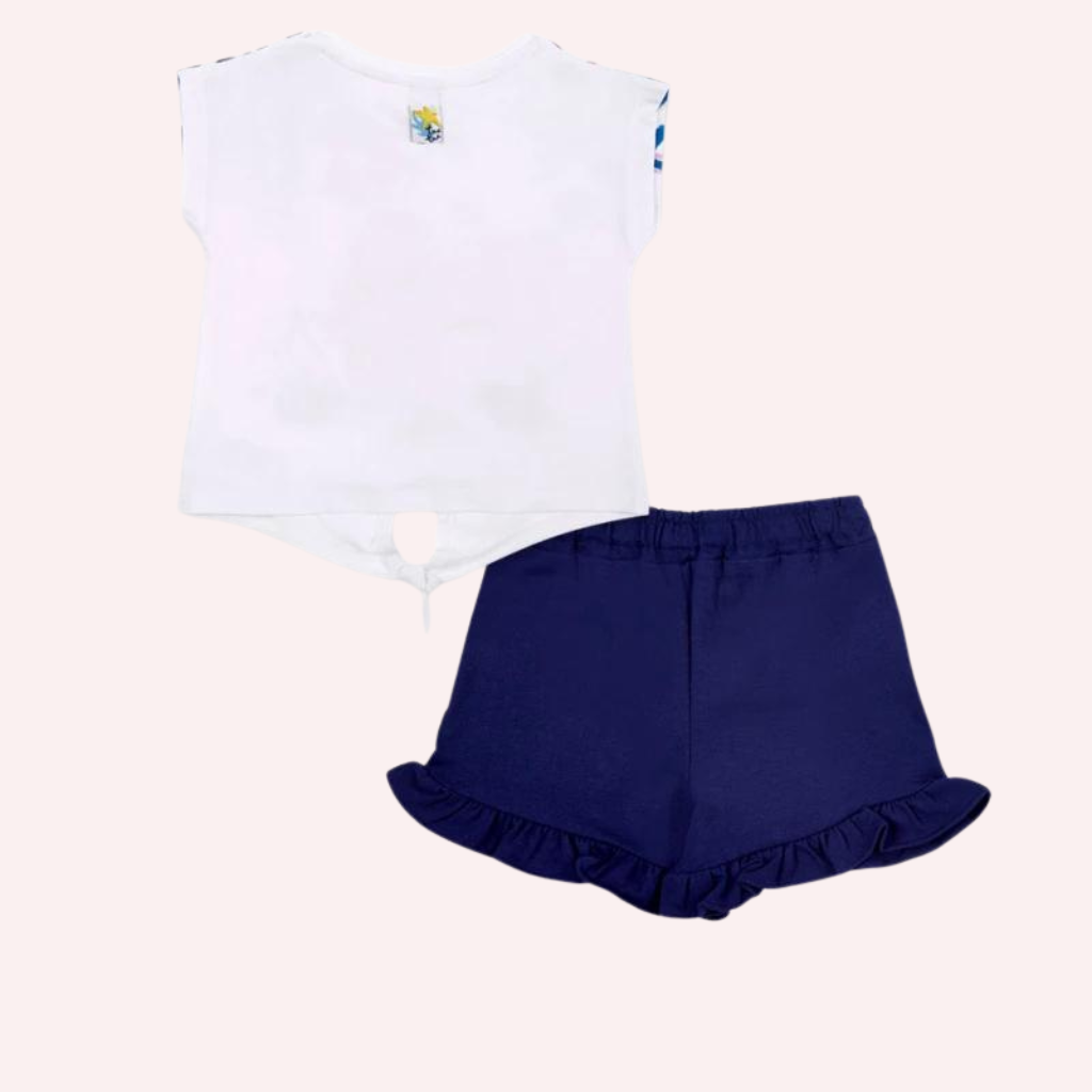 TucTuc Ocean Wonders Navy and White Knit Shorts Set