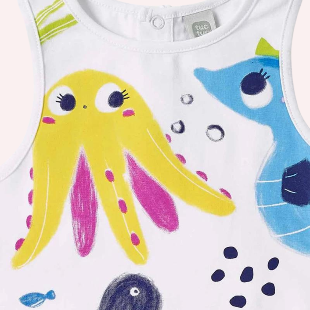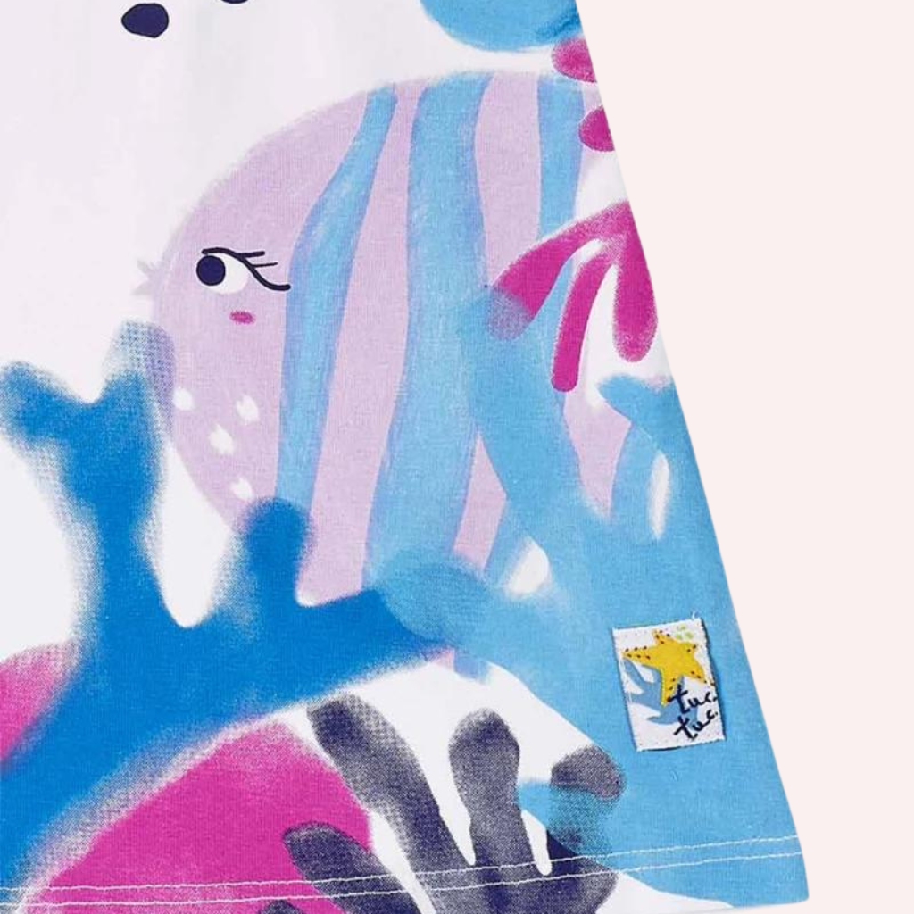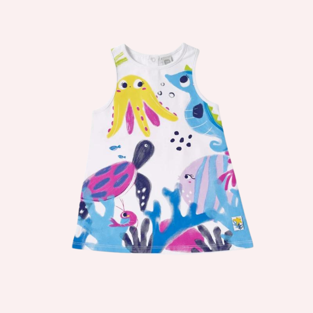 White knit dress with animal print for girls. Ocean Wonders collection Ocean Wonders collection